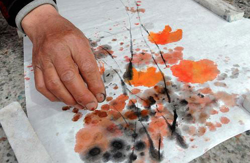 在河南省开封市翰园碑林景区内,辟有一块专供书画名家展示各种书法、绘画绝活的场地。这里推出的沙书、口书、勺书、反书、指画等,让市民和游客们大开眼界。新华社记者王颂摄