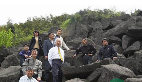 本网讯(手机记者 董国光)4月22日上午,杭城十位著名书画家集聚在上虞覆卮山脚下,于“世界奇观,天下一绝” 的石冰川群采风后,兴奋地泼墨挥毫,金钩银划书覆卮,写意淋漓描石浪。